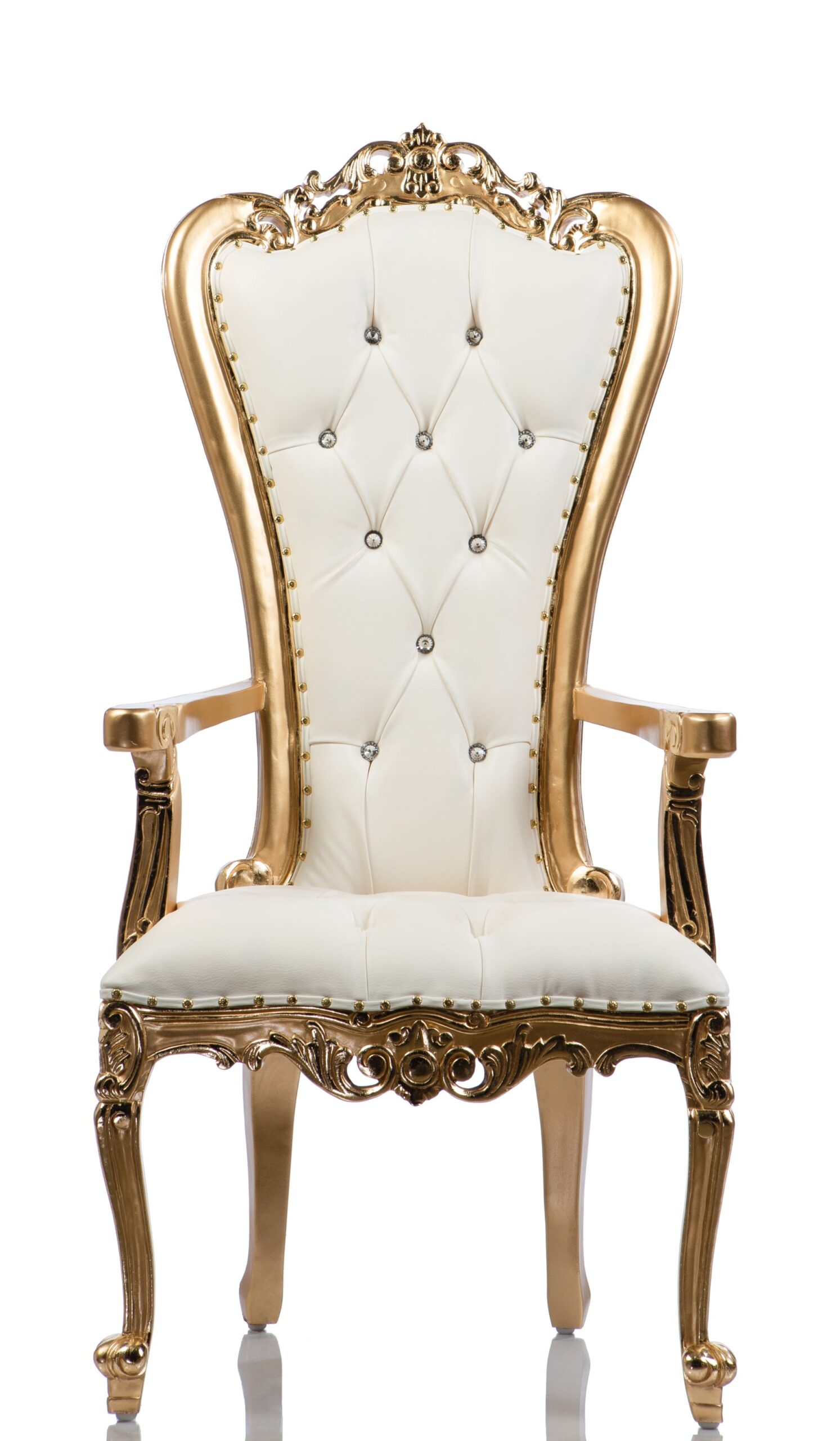 Make a statement with the Lenox armchair throne at the head of your dining table. It is perfect for hosting dinner parties where guests gather to celebrate, toast, and honor their loved ones. Choose from our three available color options: bright gold, glossy black, and antique silver frames with gold, black, and white. Check out our other options and let the Lenox armchair throne elevate your dining experience.