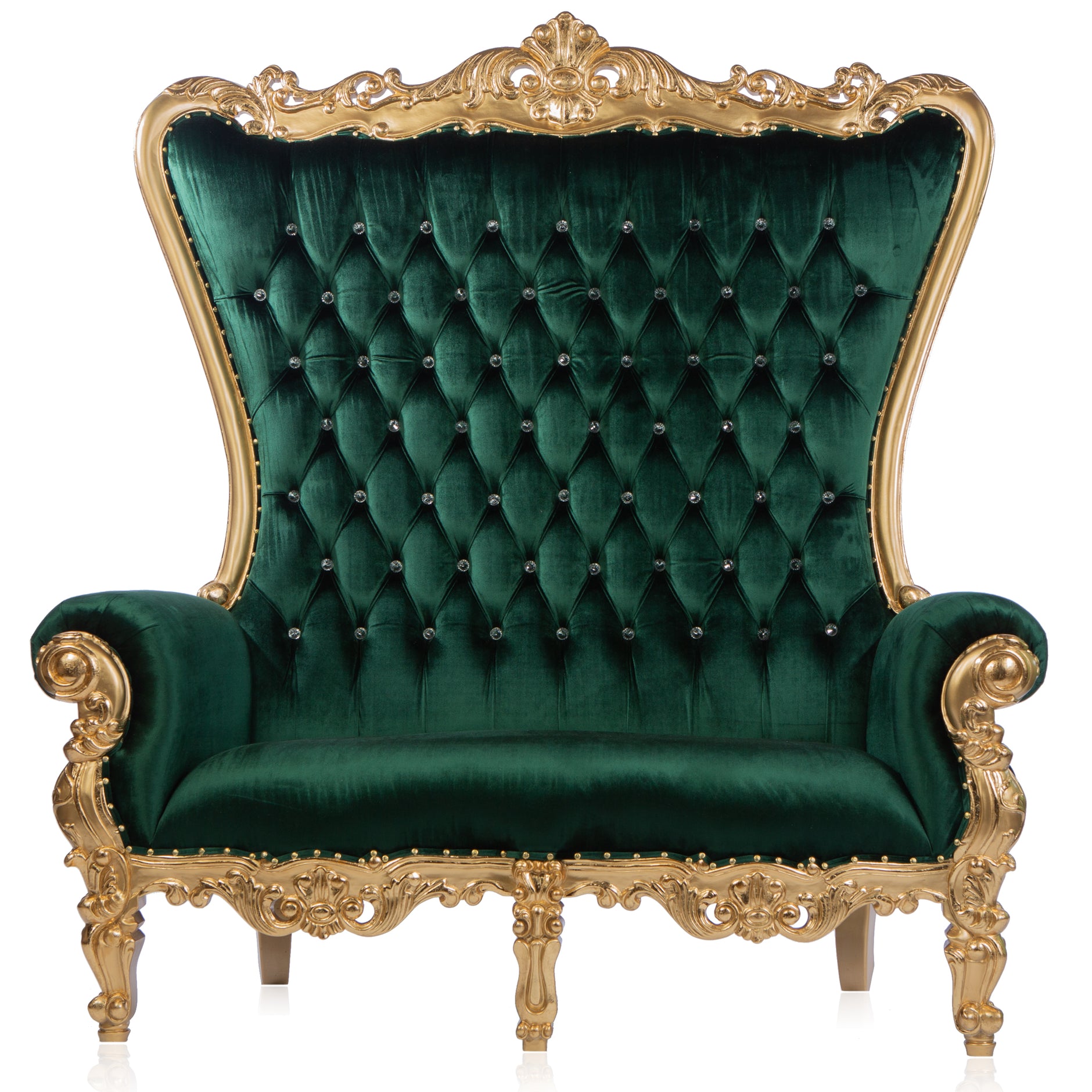 Our Double Velvet Royal Throne to keep your friends close, and your very best friends closer! This chair is a fun addition to any event l- an abas a photo op or to congratulate two guests of honor. The seat is full enough for two and can be ordered in bright gold, glossy black, pure white, or antique silver frame, as well as the same colors in seating, along with pink, red, blue, green, or purple.